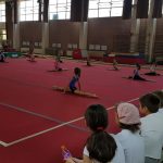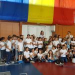 Mici vizitatori au participat și la o ședință de pregătire a gimnastelor făcând cunoștință cu aparate specifice acestui sport: paralele, bârnă, sol și sărituri.
