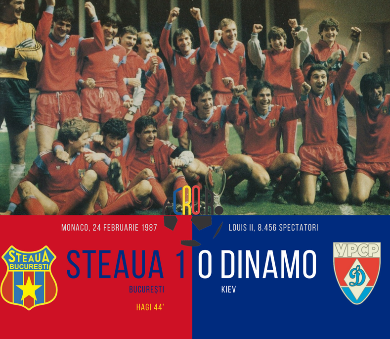 Steaua București cucerea al doilea trofeu continental, în fața lui Dinamo Kiev, pe 24 februarie 1987. Singurul gol al meciului disputat pe stadionul Louis II din Monte Carlo a fost înscris de Gică Hagi, în minutul 44, din lovitură liberă.
