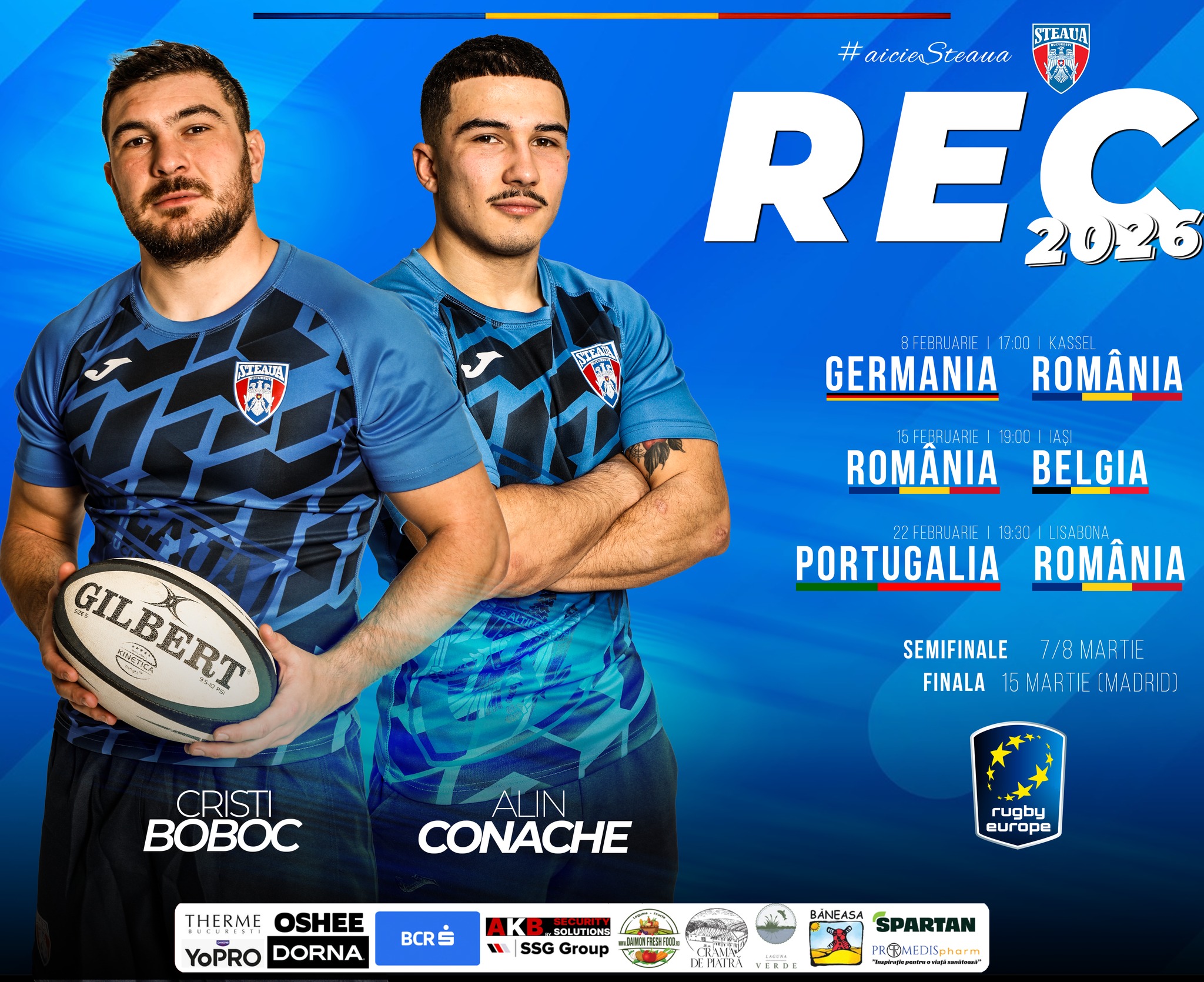 Doi jucători ai Stelei fac parte din lotul României pentru Campionatul European. Selecționerul David Gerard i-a convocat pentru partidele de la REC 2026 pe Alin Conache (mijlocaș la grămadă) și Cristi Boboc (linia a III-a).