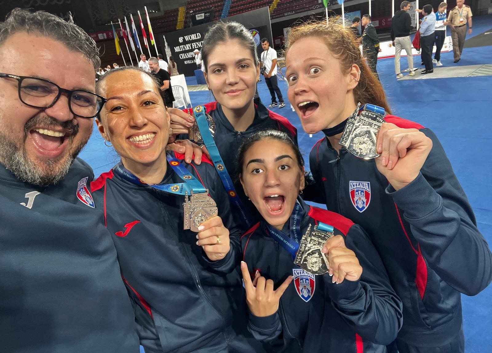 Echipa de floretă feminin a României a cucerit, joi după-amiază, medaliile de argint la Jocurile Mondiale Militare de la Sevilla.