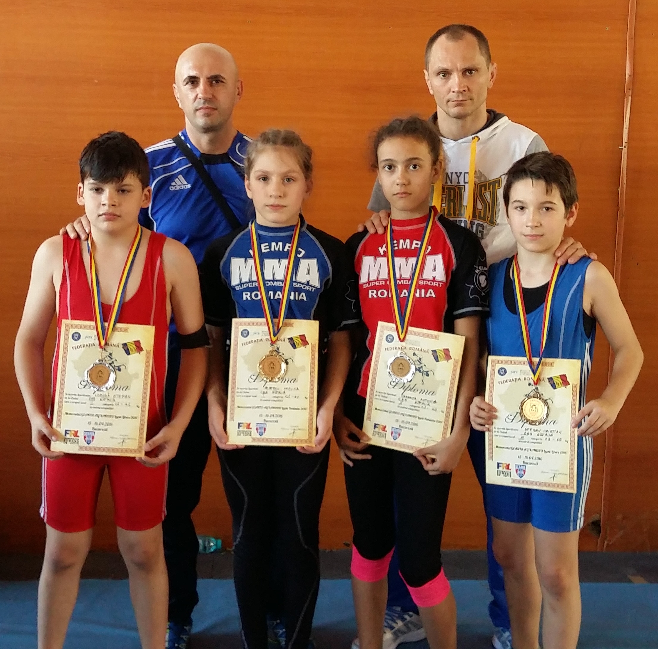 Alături de juniori au fost antrenorii Liviu Ionescu (kempo) și Claudiu Tămăduianu (lupte libere).