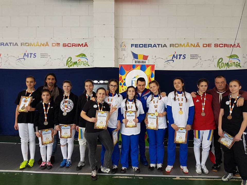 Astăzi, la Sala de scrimă „Ana Pascu” din București, a avut loc proba feminină pe echipe din cadrul Campionatului Național de sabie pentru cadeți.