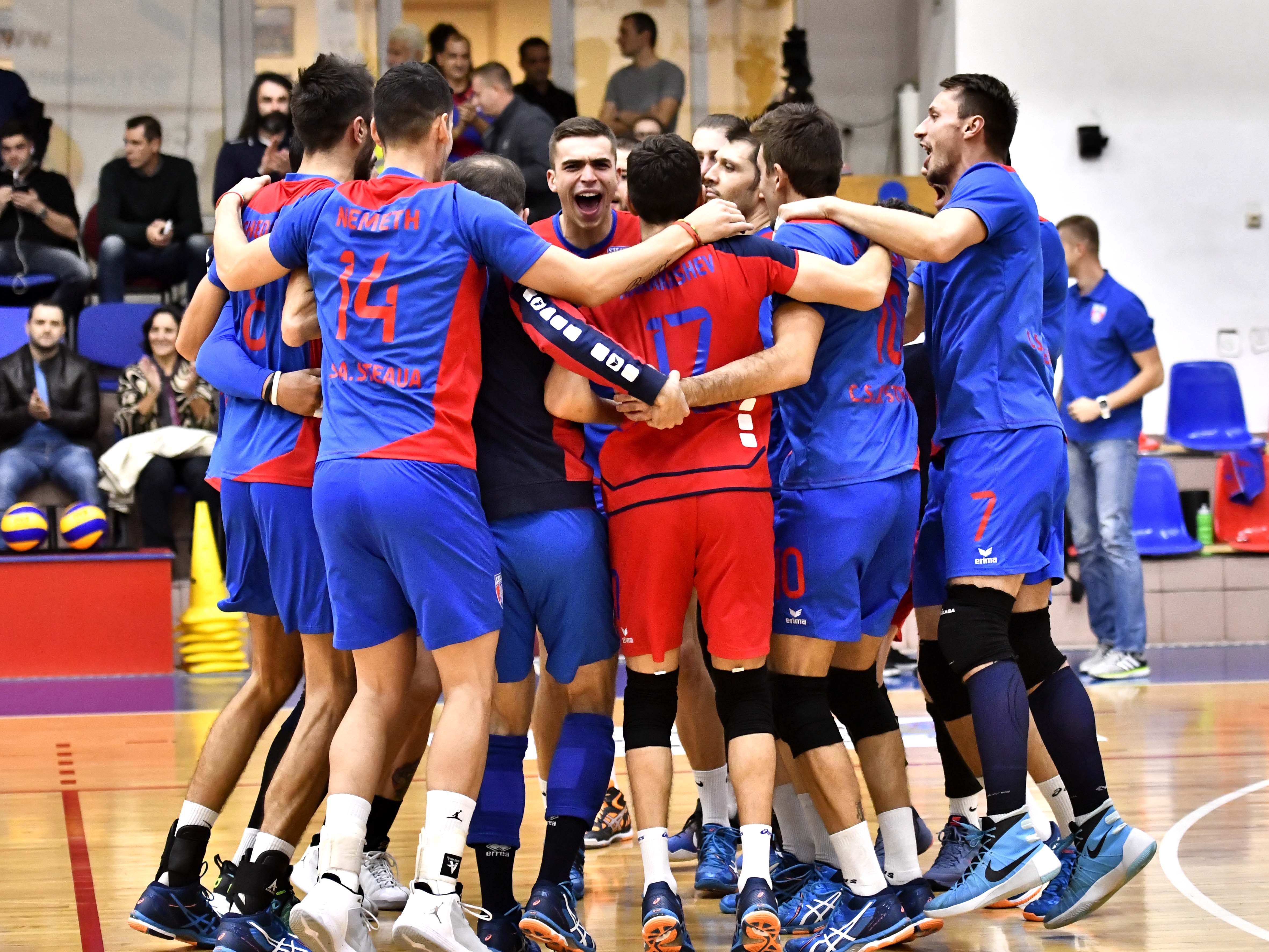 Roș-albaștrii au obținut o nouă victorie importantă în Divizia A1, impunându-se cu 3-0 (25-18, 25-22, 25-14), în fața oaspeților de la Tricolorul. Astfel, elevii lui Bogdan Tănase și Răzvan Roșu au trecut în fruntea clasamentului, cu 16 puncte.