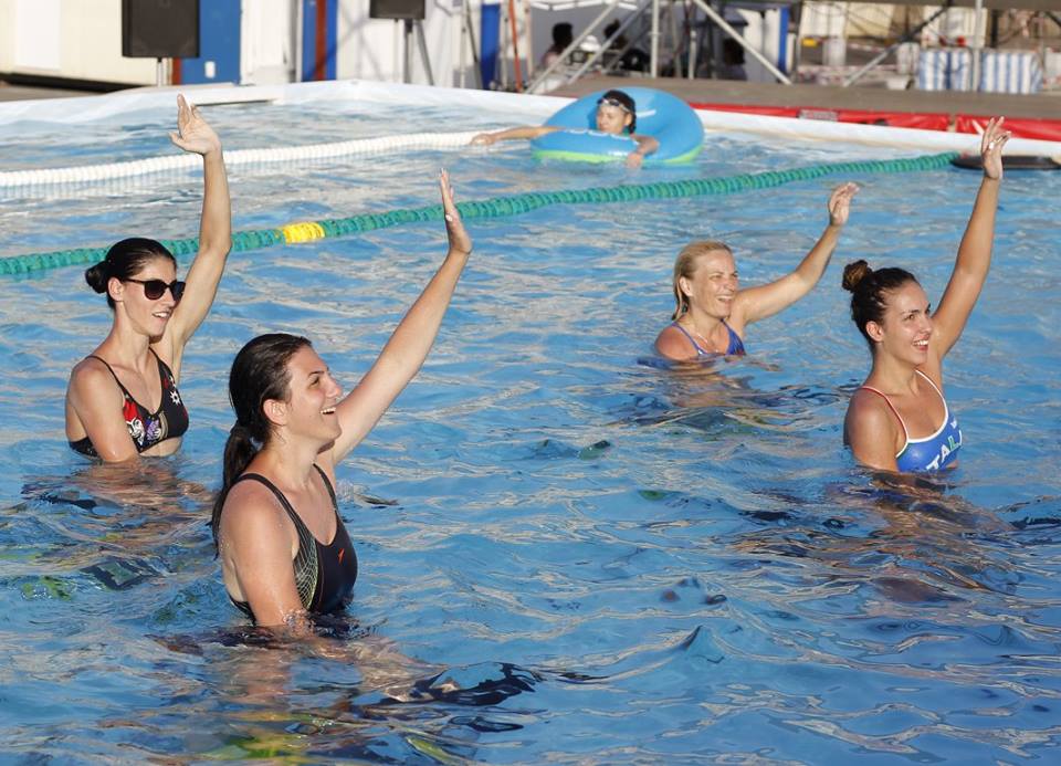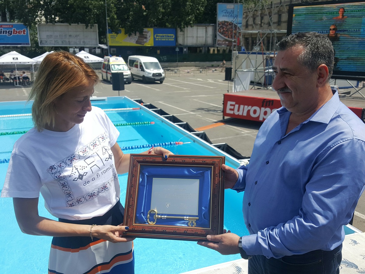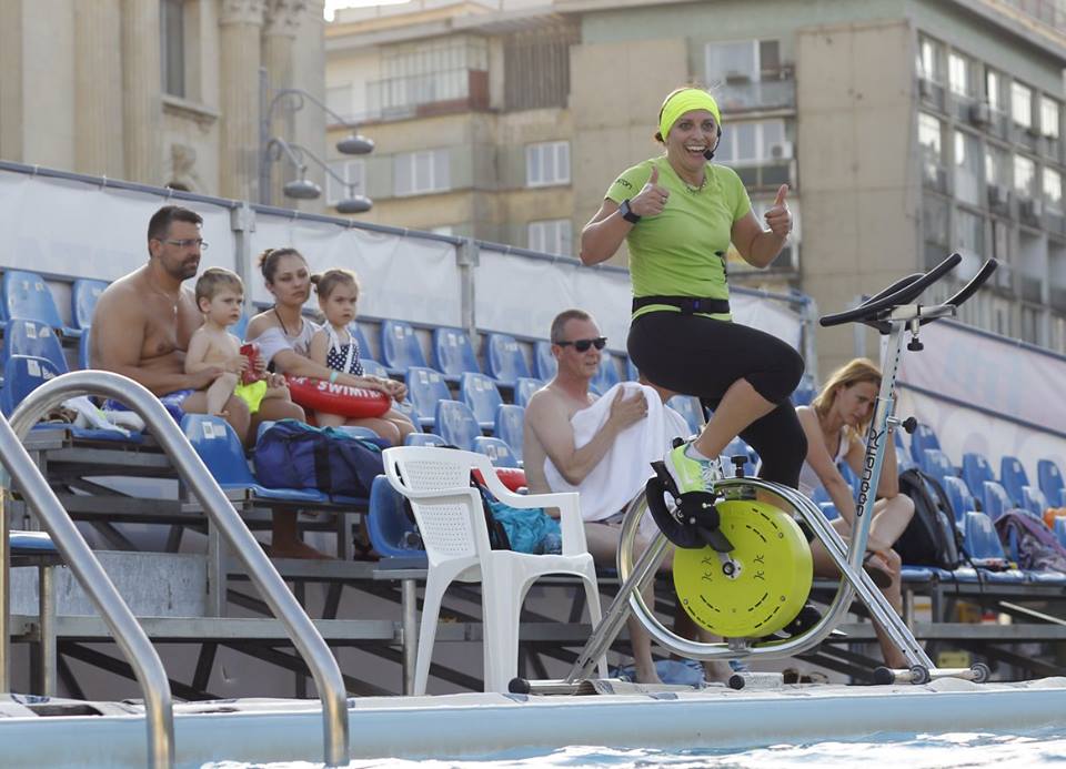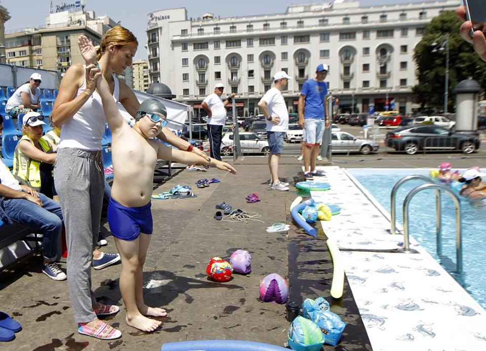 Și-a dorit să organizeze încă de anul trecut o competiție internațională în aer liber cu o piscină demontabilă în fața Casei Poporului, pentru a promova sportul pe care îl reprezintă. Avea exemplul Jocurilor Olimpice, Campionatelor Mondiale sau Europene, unde se amplasau piscine chiar și în săli polivalente. A fost convinsă că și în România poate fi realizat un asemenea proiect, însă costurile mari au amânat cu un an evenimentul. Iar în această săptămână, mii de copii și adulți s-au bucurat în centrul Capitalei, în apropierea Ateneului Român, de beneficiile mișcării în apă: înot, aquafitness, aquaboxing, aquagym, aquabike – toate sub îndrumarea unor instructori experimentați de la Asociația Europeană Acvatică. În plus, micuții s-au distrat și pe trambulinele în apă, dar și la workshopuri de pictură, desen sau foto.