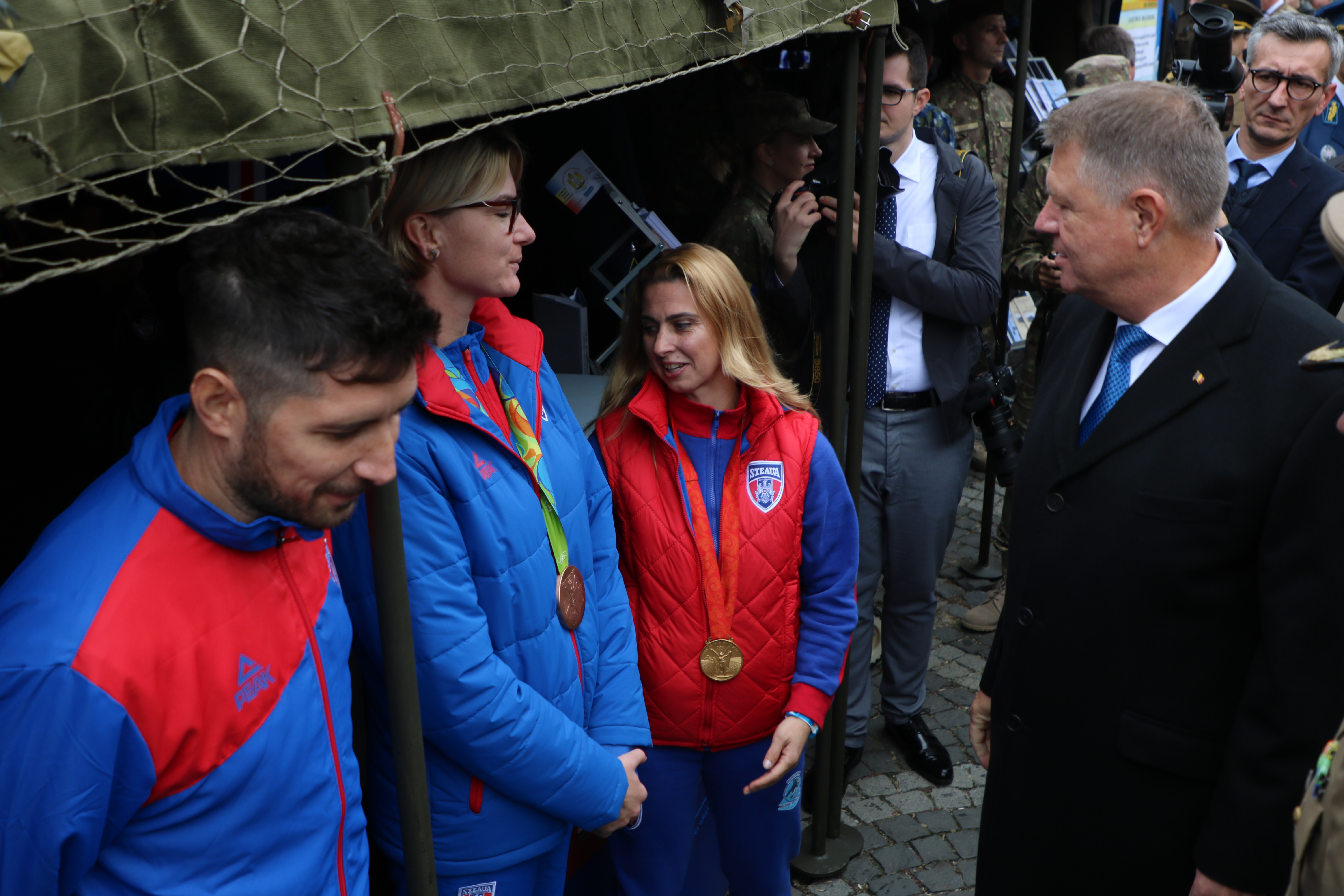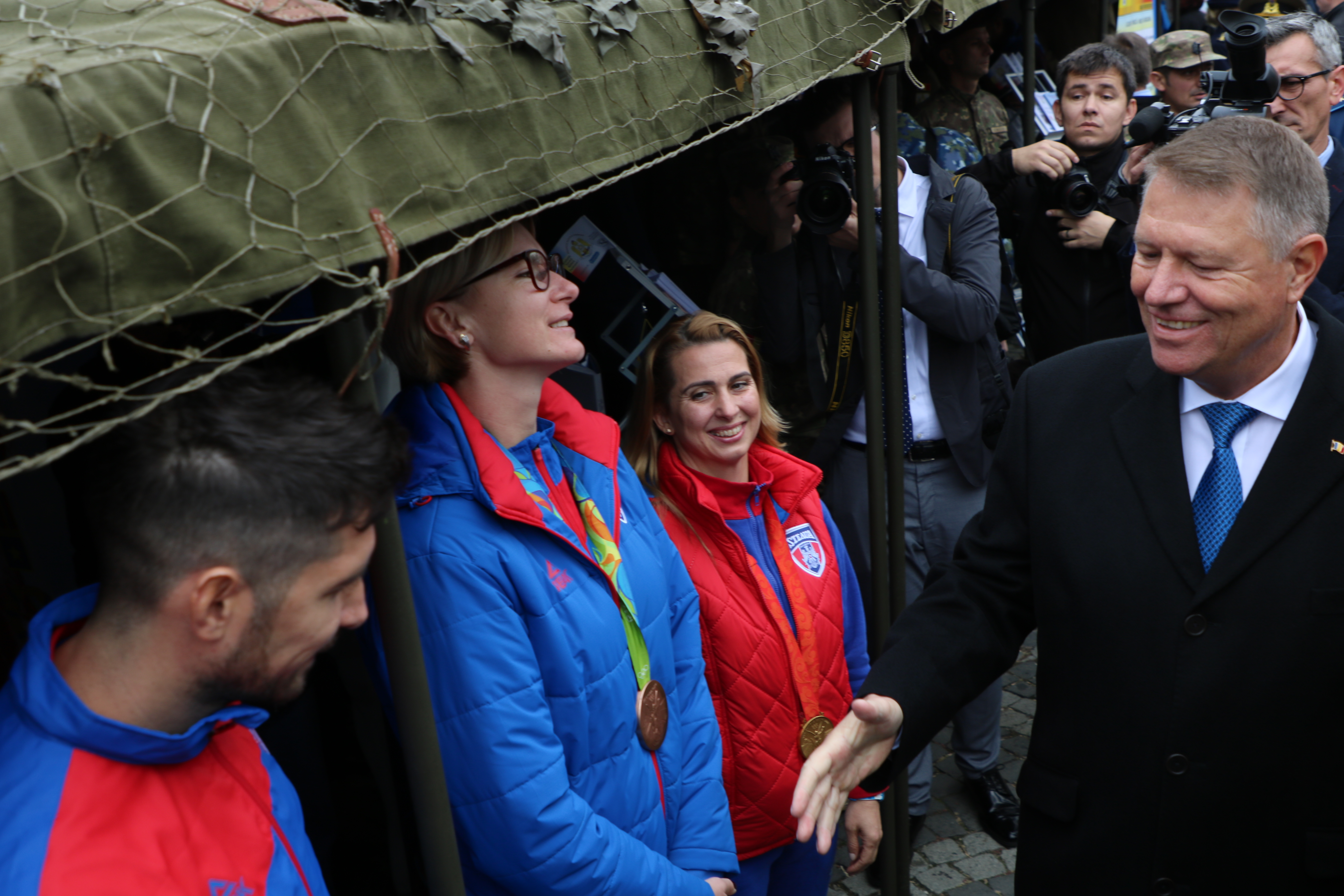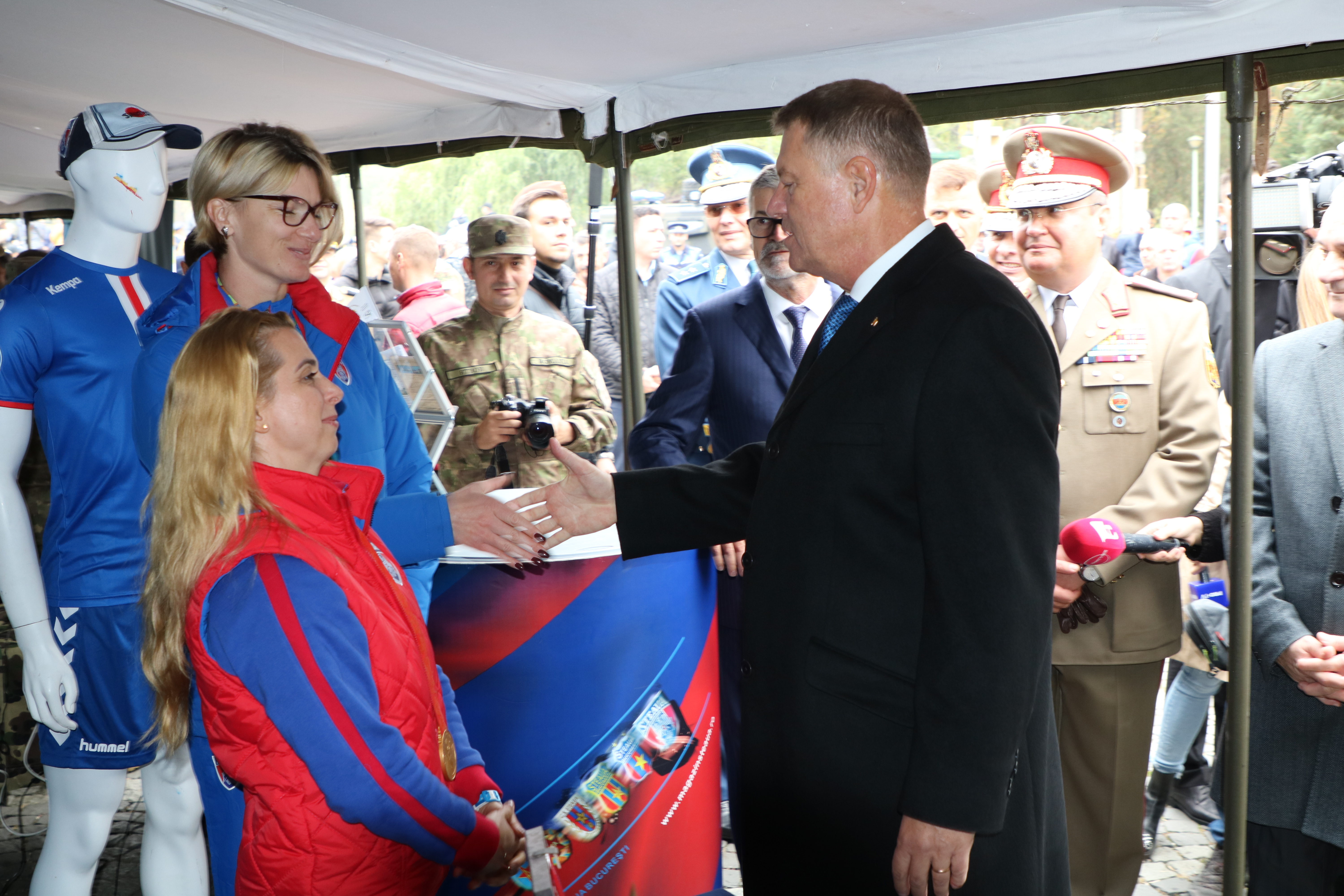 Prezent în Parcul Carol la festivitățile dedicate Zilei Armatei Române, președintele Klaus Iohannis a vizitat și standul clubului Steaua București.