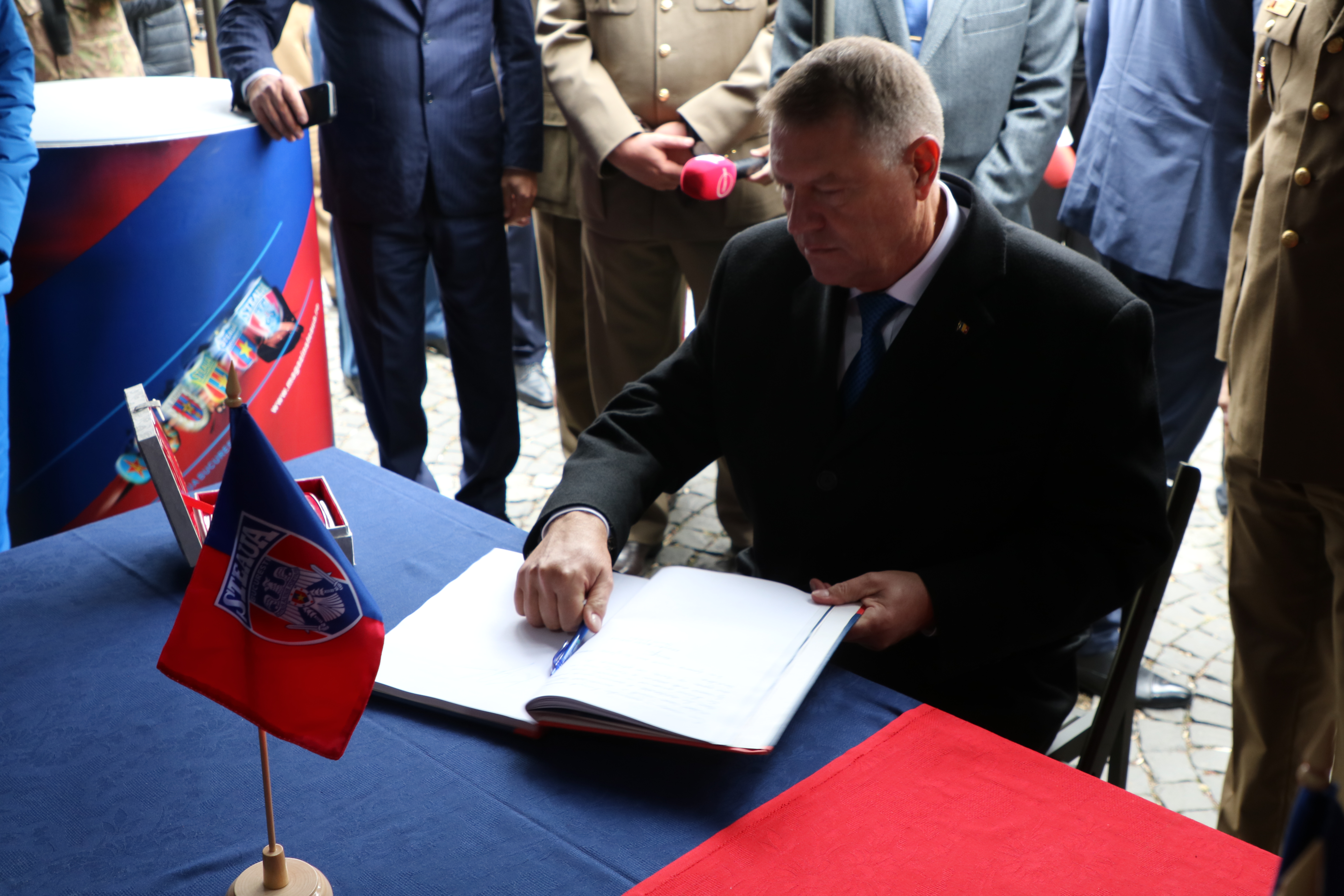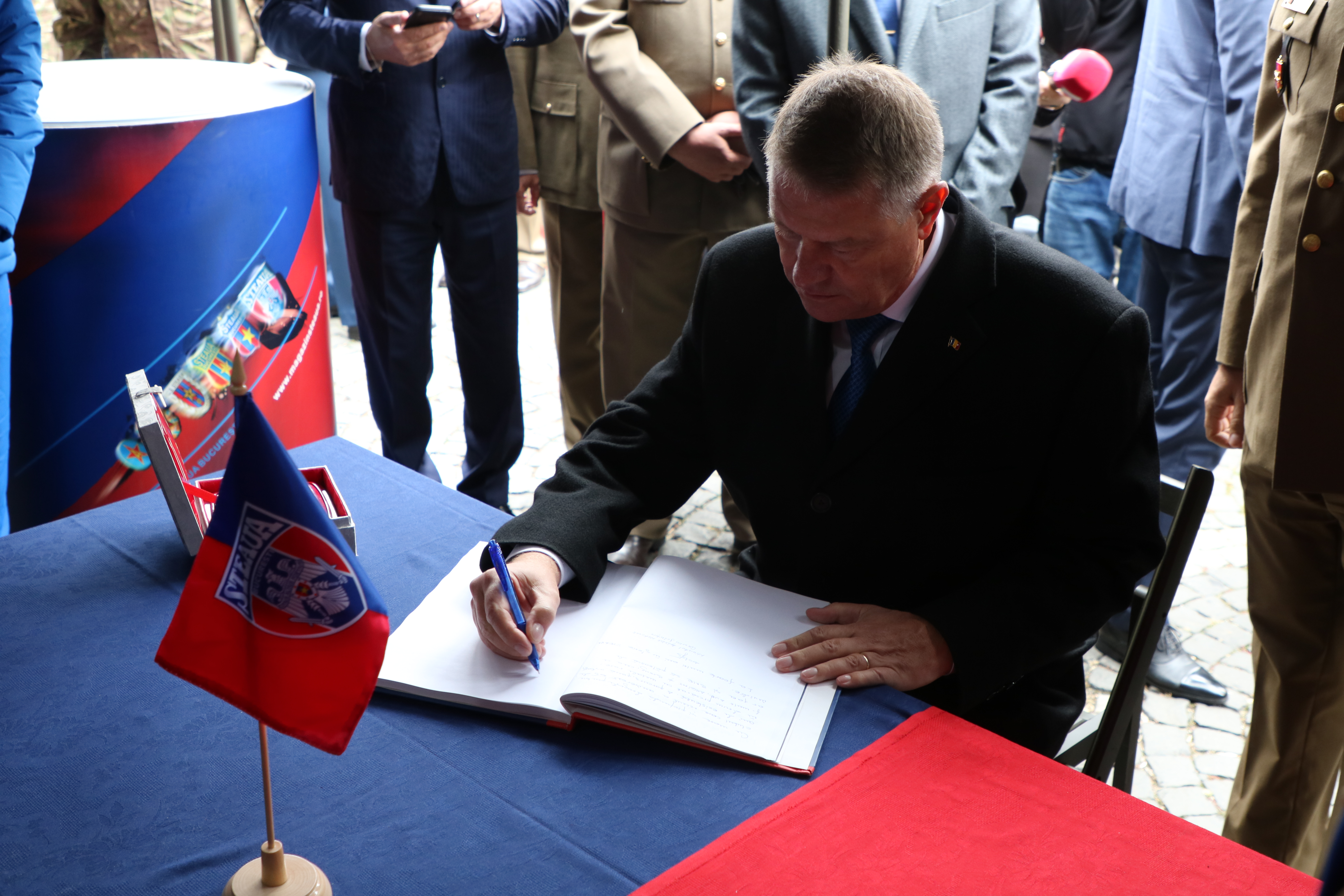 Klaus Iohannis i-a felicitat pe aceștia pentru rezultatele obținute de-a lungul carierei și, înainte de a pleca, a semnat în cartea de onoare a clubului roș-albastru.