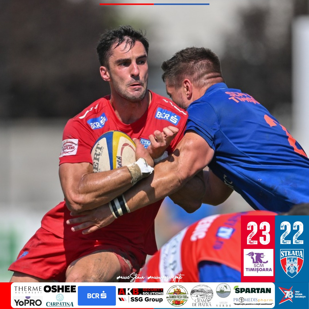 Steaua a pierdut dramatic meciul din semifinalele Ligii de Rugby ”Kaufland”, 22-23 la Timișoara cu SCM USV. Roș-albaștrii au jucat curajos, au condus cu 10-3 în prima parte și cu 22-16, cu 9 minute înainte de final, dar nu au știut să gestioneze momentele cheie!