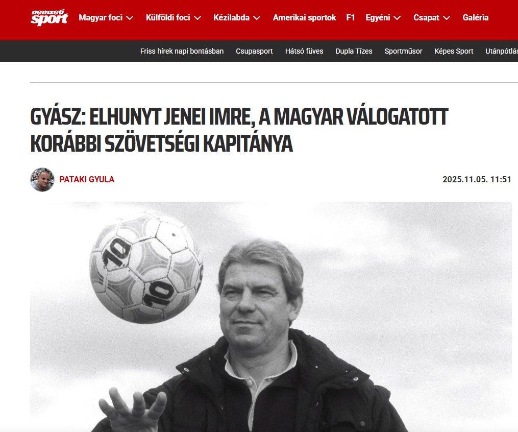 Și maghiarii de la NemzetiSport au scris despre moartea tehnicianului legendar, amintind faptul că Emerich Jenei a antrenat și naționala Ungariei (1992-1993).