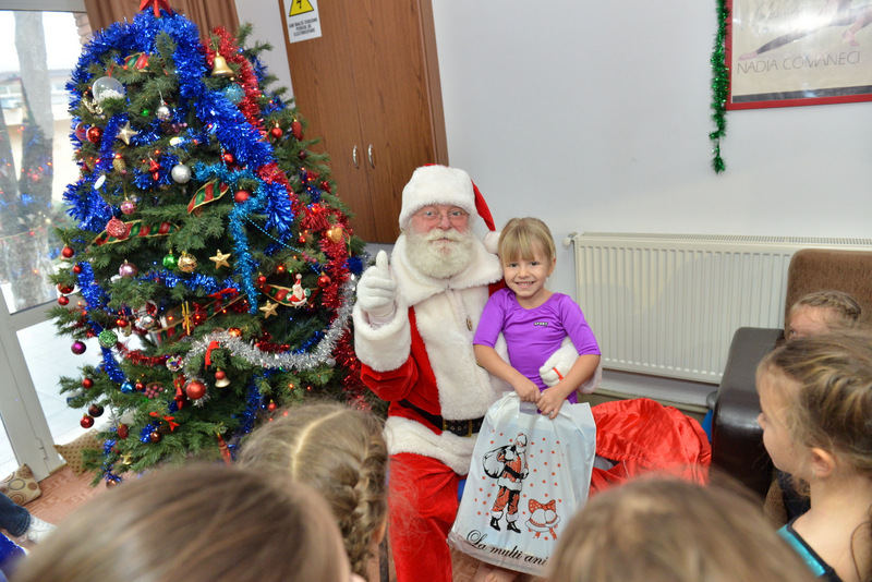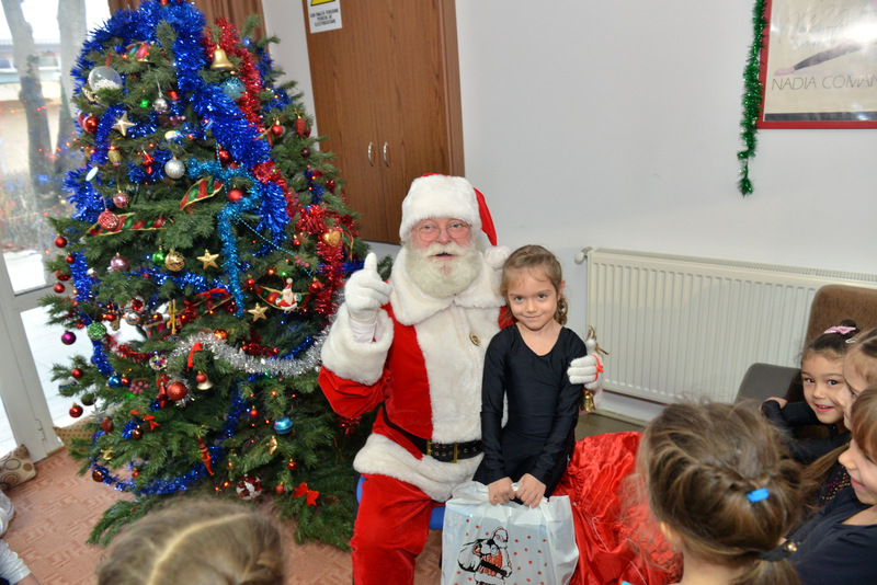 La finalul serbării, Moș Crăciun le-a împărțit cadouri micuțelor și le-a felicitat pentru bunele rezultate obținute atât la școală, cât și în sala de gimnastică.