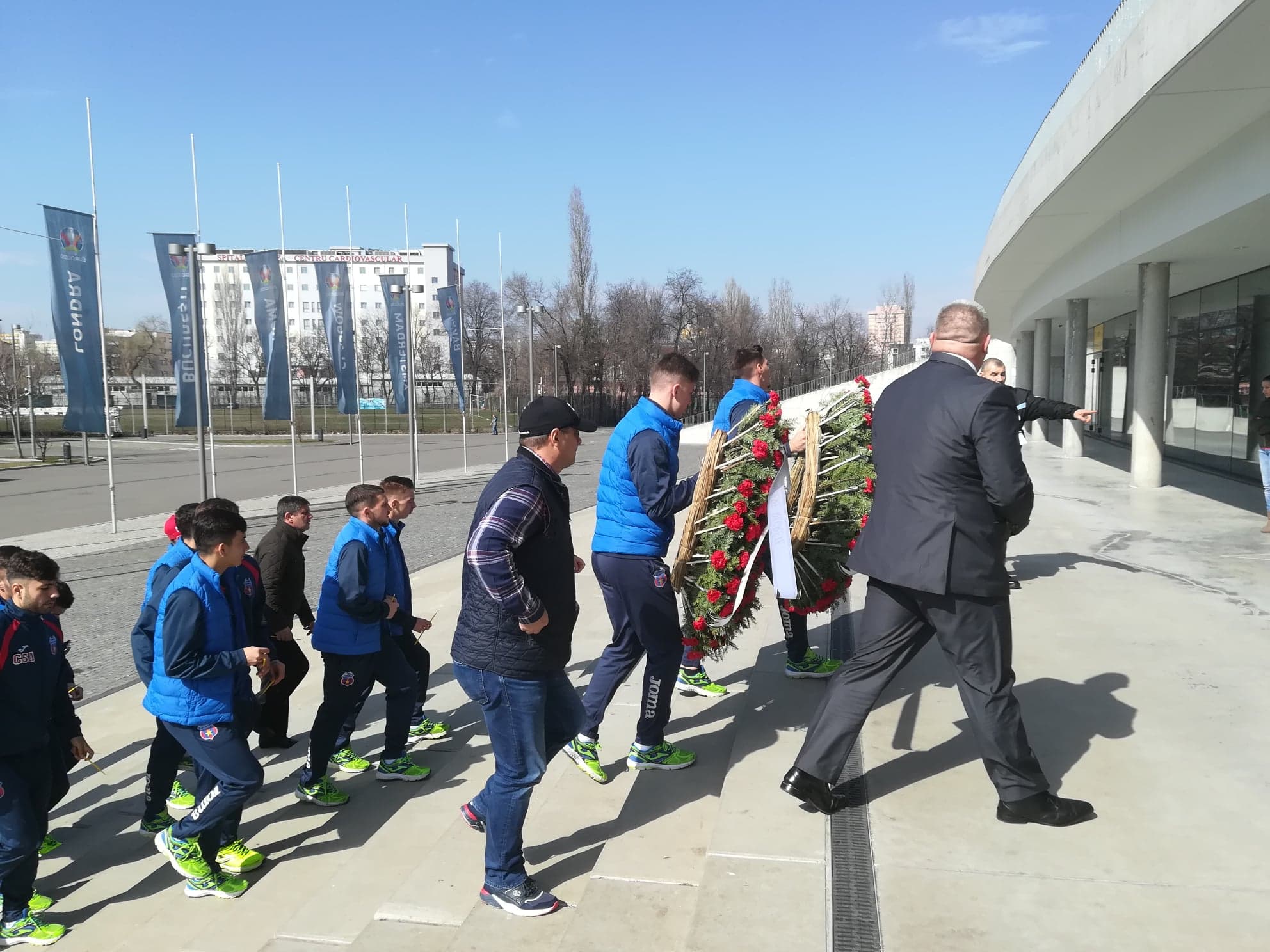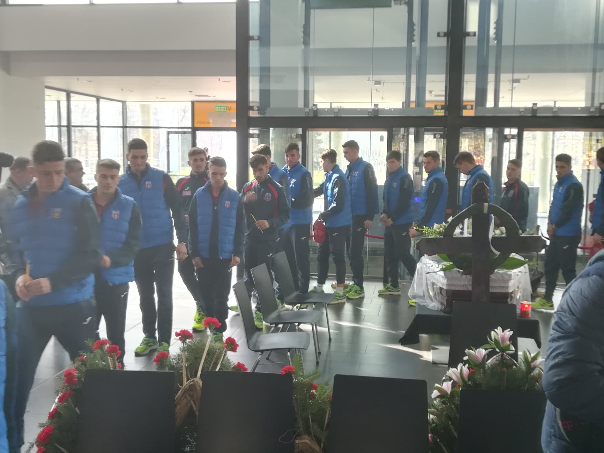Actuala echipă de fotbal Steaua București a depus deja o coroană cu flori la catafalc, iar le meciul cu Venus, câștigat cu 9-0, s-a ținut un moment de reculegere.