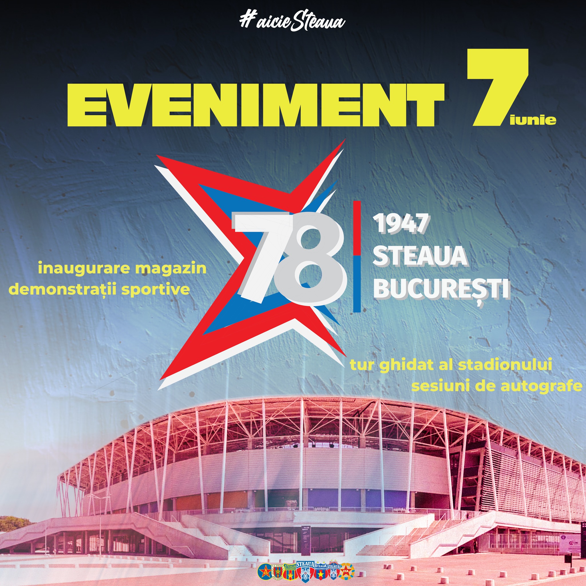 Ținând cont că, pe 7 iunie, Steaua București celebrează 78 de ani de la înființare, pe esplanada stadionului se vor desfășura demonstrații sportive, sesiuni de autografe, concursuri, tur ghidat al stadionului Steaua, dar și alte surprize. Evenimentul debutează la ora 10:00 și se va încheia la ora 17:00.