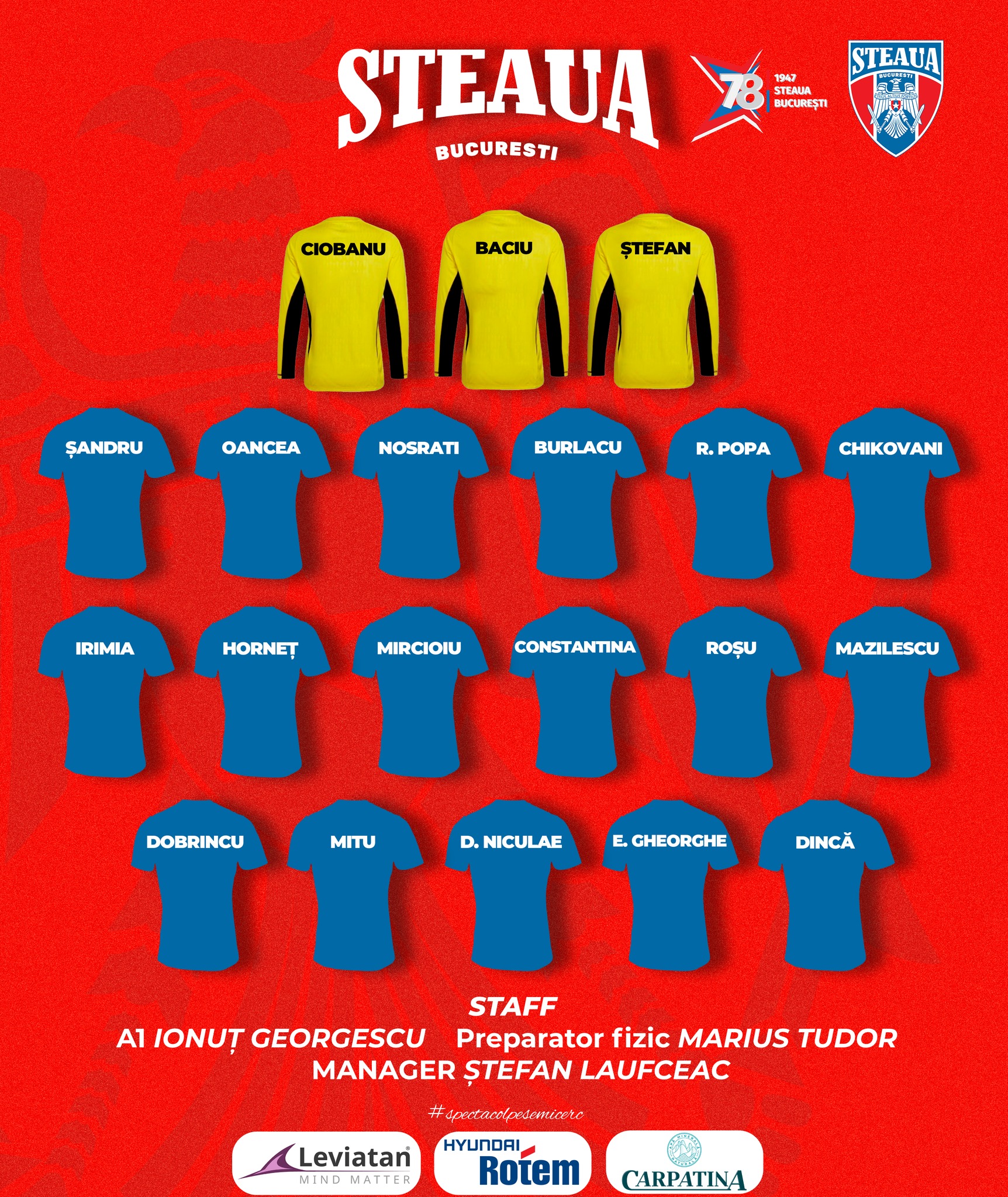 Steaua București va aborda sezonul viitor cu un lot nou, obiectivul echipei fiind promovarea în Liga Națională. Tehnicianul echipei noastre va fi Ionuț Georgescu, cel care a mai fost antrenor principal în sezonul 2023-2024, în ultimele 12 etape de campionat. Ionuț a fost sezonul trecut tehnicianul echipei de tineret și a promovat câțiva tineri de perspectivă la echipa mare.
