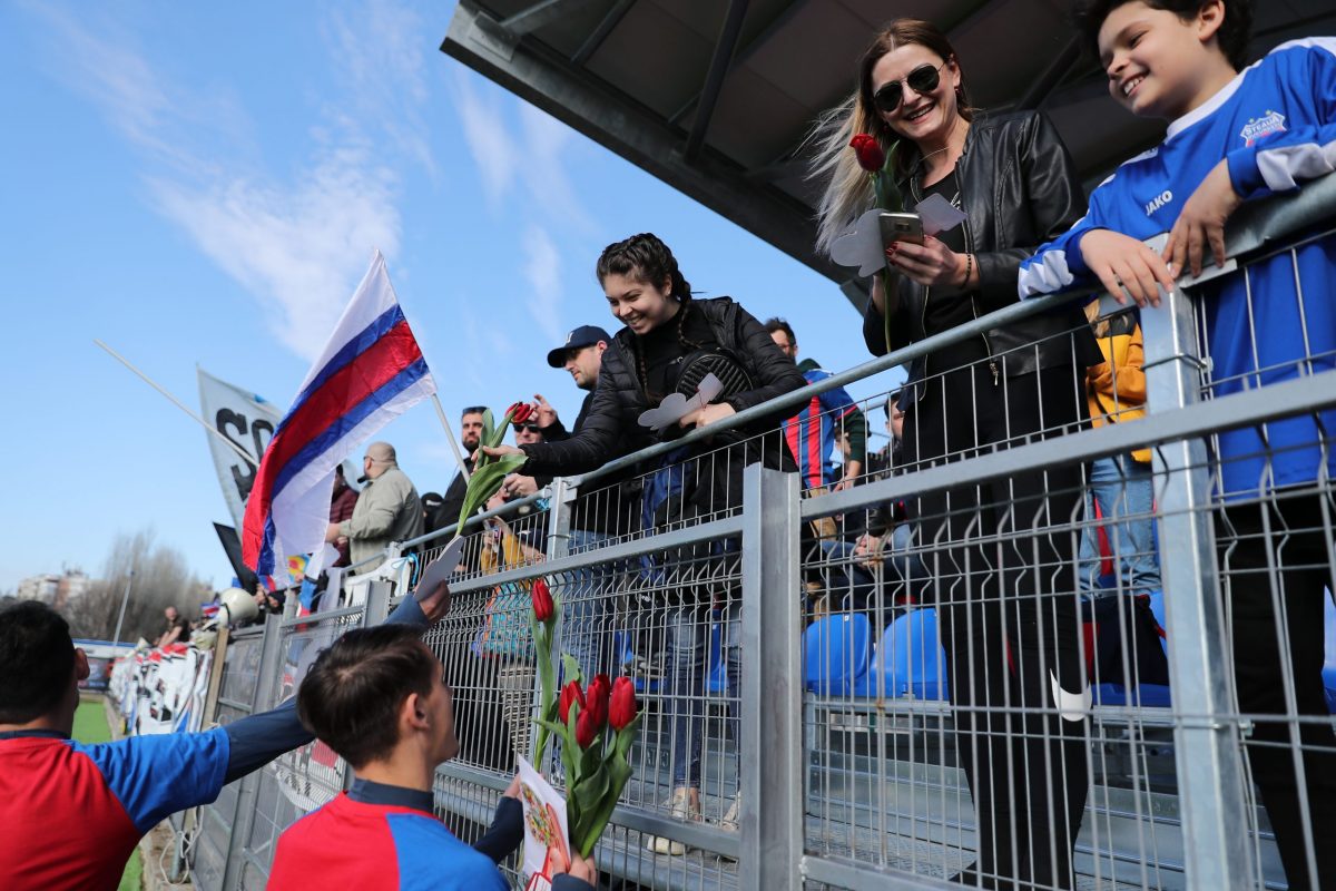 Înainte de începerea partidei, fotbaliștii au adus primăvara în sufletul doamnelor și domnișoarelor prezente în galerie, oferindu-le flori și mărțișoare cu șnur roș-albastru, cu sprijinul Generali România Asigurare Reasigurare SA.