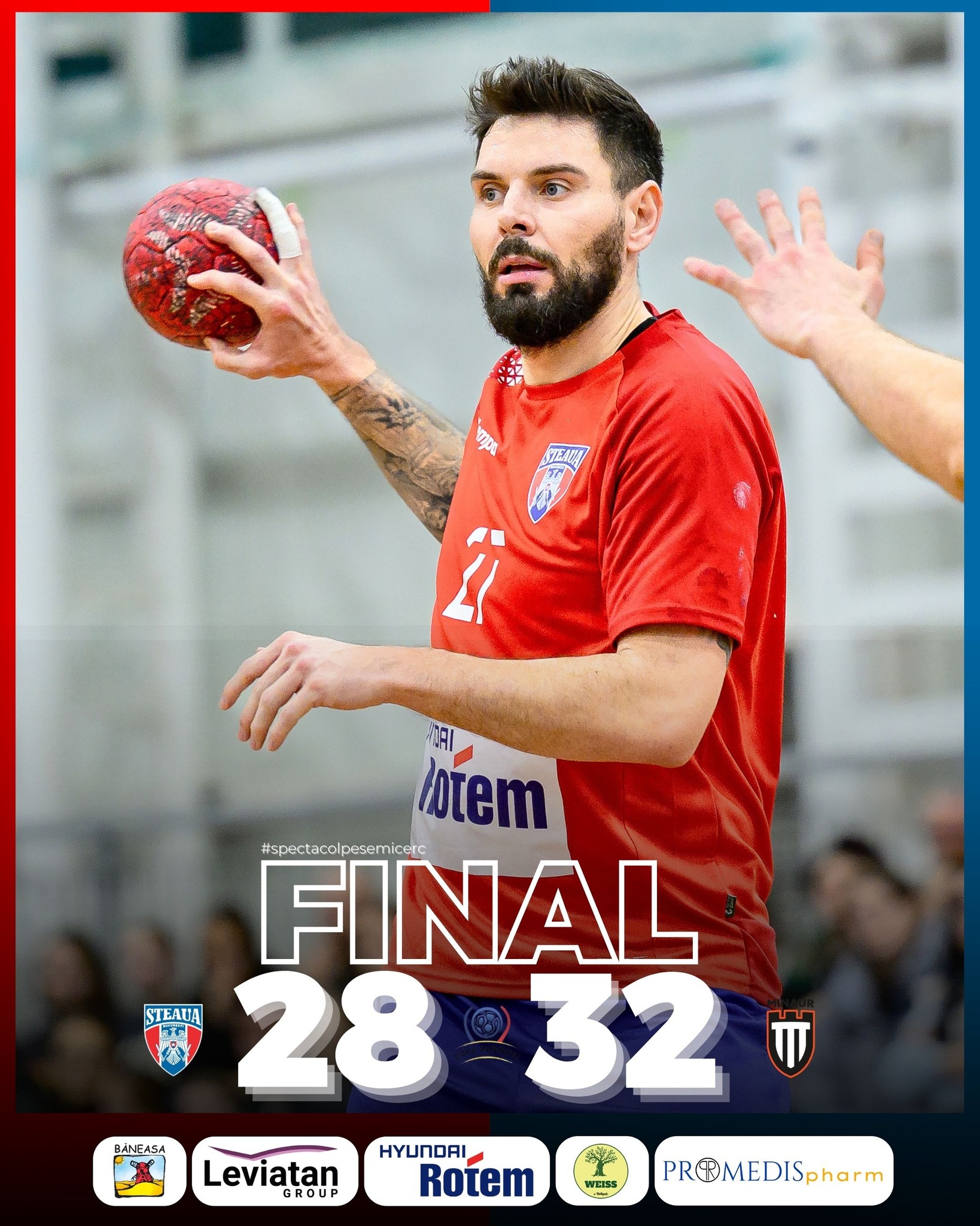 Steaua a revenit pe finalul meciului, s-a apropiat la trei lungimi distanță, dar a cedat în cele din urmă, 28-32. Ovidiu Irimia, autor a 8 goluri, a fost desemnat cel mai bun handbalist al Stelei. Evoluții bune și pentru Ciprian Șandru 4 reușite, dar și pentru portarul Ionuț Ciobanu, care a terminat întâlnirea cu 8 parade.