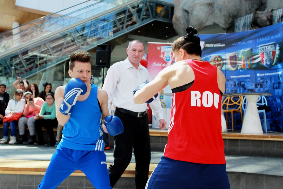 Ziua boxului în ”Săptămâna Campionilor” a atras ca un magnet copiii din AFI Palace Cotroceni. Pugiliștii steliști Lăcrămioara Perijoc, Claudia Nechita, Răzvan Farcaș și Claudiu Pălădoiu, au făcut un antrenament ”ca la carte” pentru micii spectatori, apoi, cu ajutorul arbitrului internațional Ion Orzoi au boxat câteva reprize. Copiii au fost încântați și au vrut să încerce ”pe pielea lor” croșeele și upercuturile. Antrenorii Adrian Lăcătuș și Daniel Tacu i-au echipat corespunzător, le-au explicat regulile de bază, le-au dezvăluit câteva secrete ale ”nobilei arte”, iar pugiliștii începători au luptat drept și dârz în ringul improvizat. La final toți au fost bucuroși de lecțiile învățate, au spus că boxul nu este deloc un sport violent, iar câțiva dintre ei chiar își doresc să-l practice. Nu au lipsit nici de această dată cadourile de la CSA ”Steaua București”, care au fost înmânate de tripla campioană europeană la box, Steluța Duță.