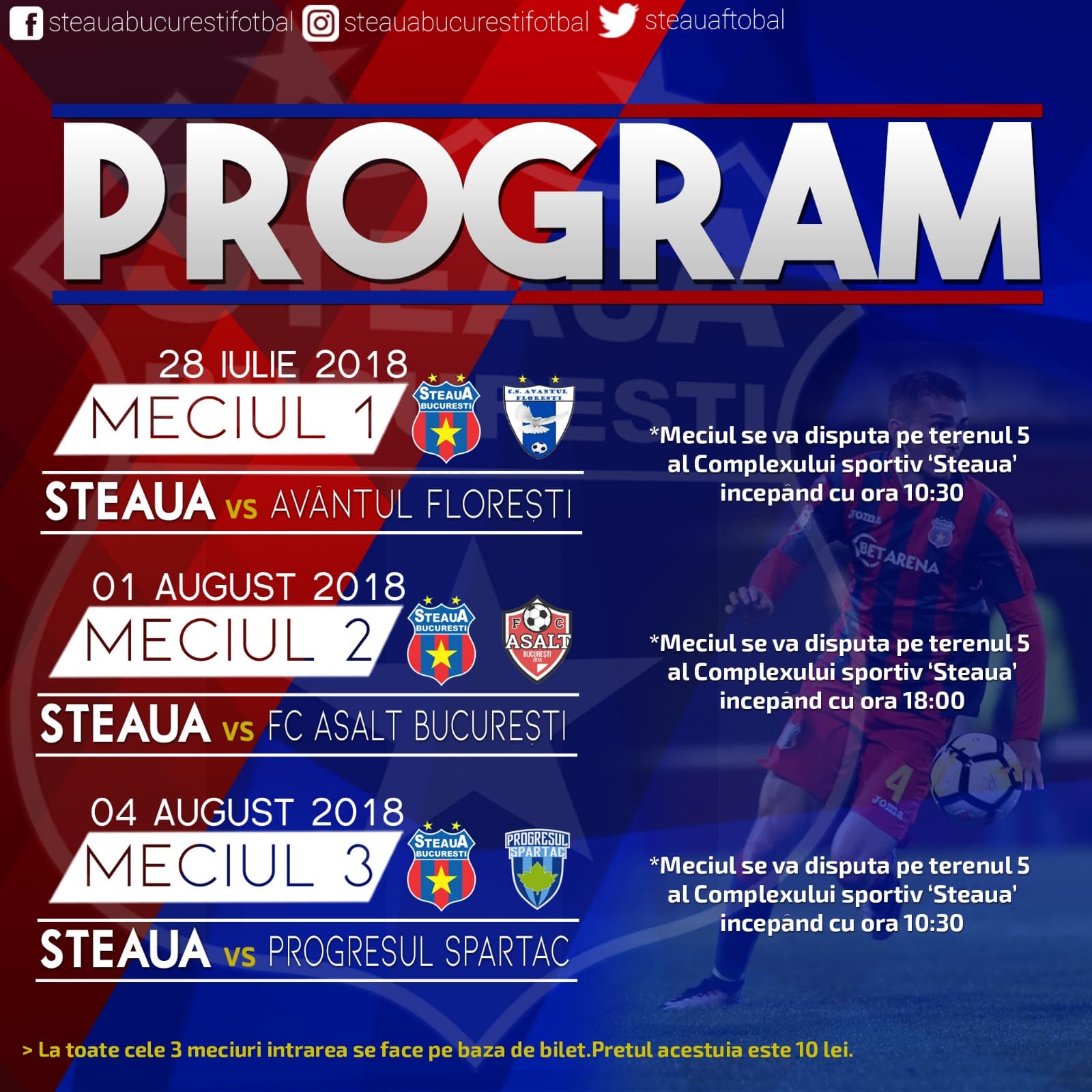 Echipa de fotbal Steaua București a reluat pregătirile în vederea noului sezon competițional. Formația noastră a perfectat deja trei partide amicale, al căror program este următorul: