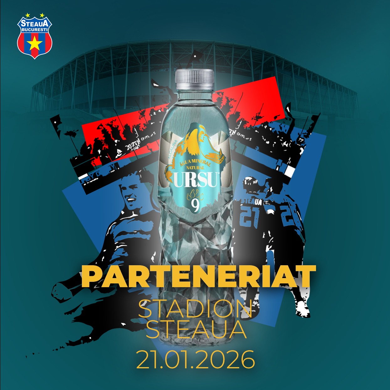 Steaua București anunță lansarea oficială în România a apei Ursu și încheierea parteneriatului cu echipa de fotbal seniori a clubului.