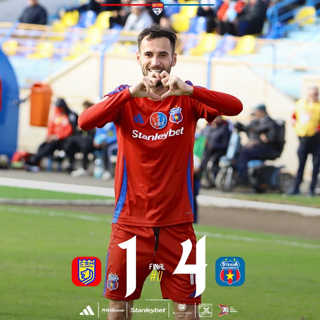 În cea mai lungă deplasare din acest sezon, Steaua s-a impus la Satu Mare, scor 4-1 (3-0), în fața celor de la CSM Olimpia, în etapa a 11-a din LIga 2.