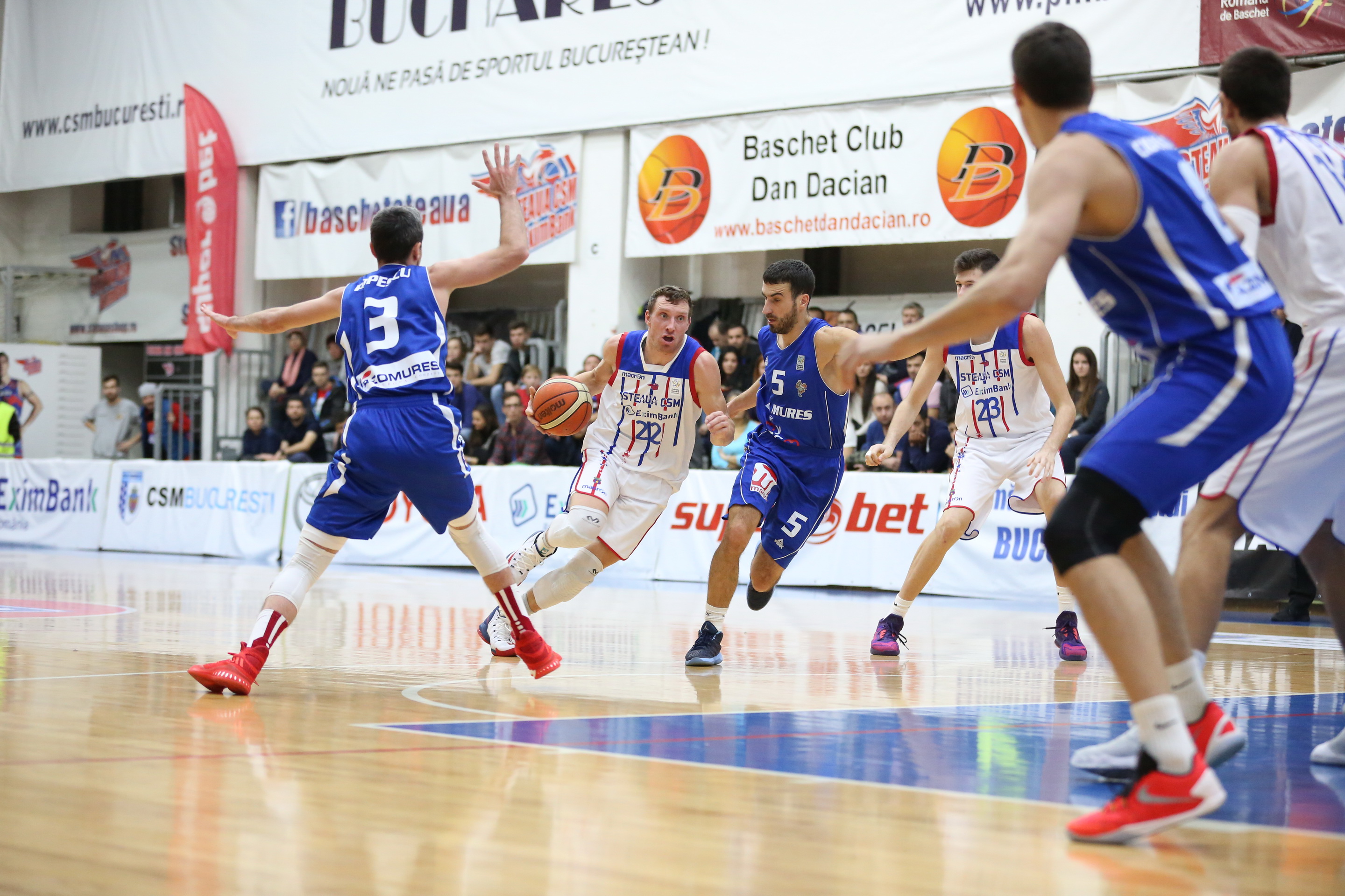 Steaua CSM EximBank a obținut o victorie importantă în etapa a XX-a din Liga Națională de Baschet masculin. Roș-albaștrii au câştigat în prelungiri partida cu BC Mureş, cu scorul de 93-87.