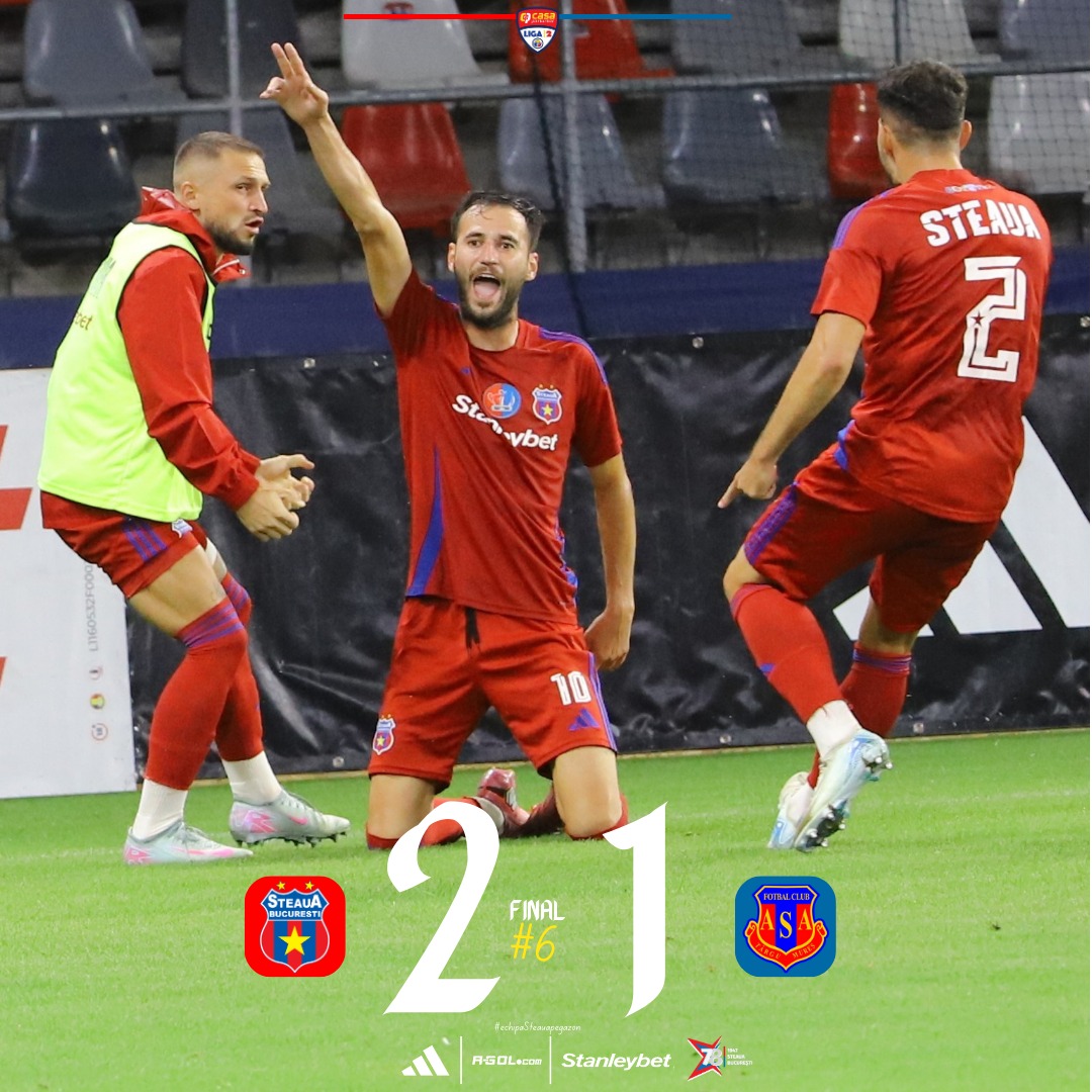 Steaua București a învins liderul din Liga 2 în etapa a șasea. Evoluția steliștilor în prima repriză a fost în ton cu vremea, o ploaie torențială care a sâcâit ambele echipe.