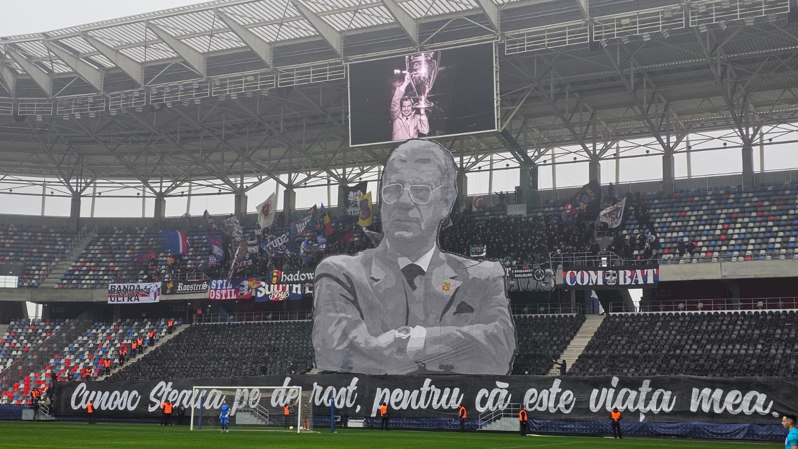 Felicitări supoterilor steliști prezenți pe stadion pentru superba coregrafie realizată în onoarea celui care a fost Emeric Ienei.