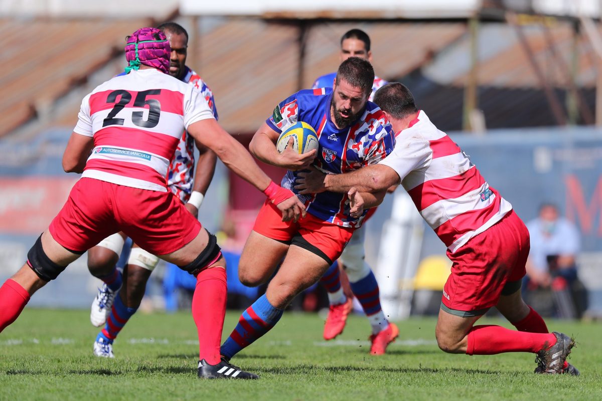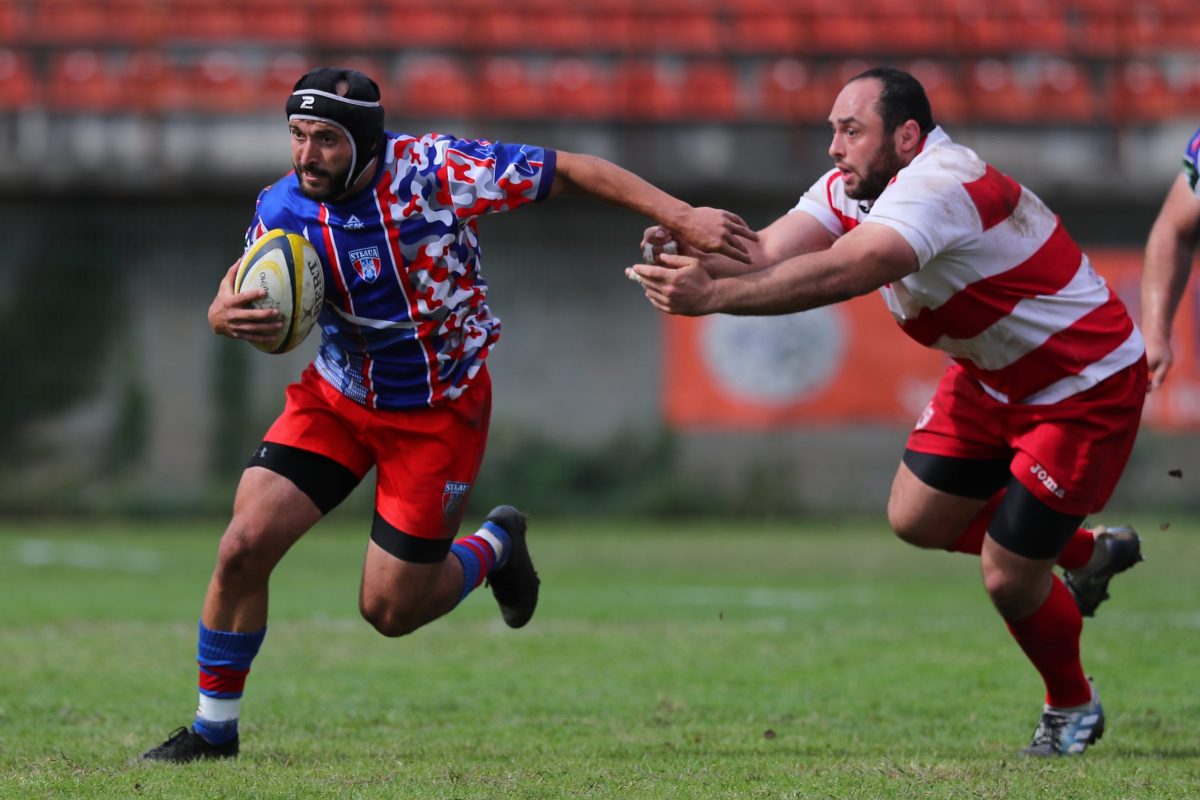 Roș-albaștrii au dominat partida încă din primele minute. Primul eseu al meciului a fost marcat de aripia Ionuț Dumitru (care a reușit dubla) și Tudor Boldor a ratat transformarea. În prima repriză au mai marcat Dragoș Ser, Eseria Vueti, Sioeli Lama câte un eseu, iar Tudor Boldor a reușit două transformări.